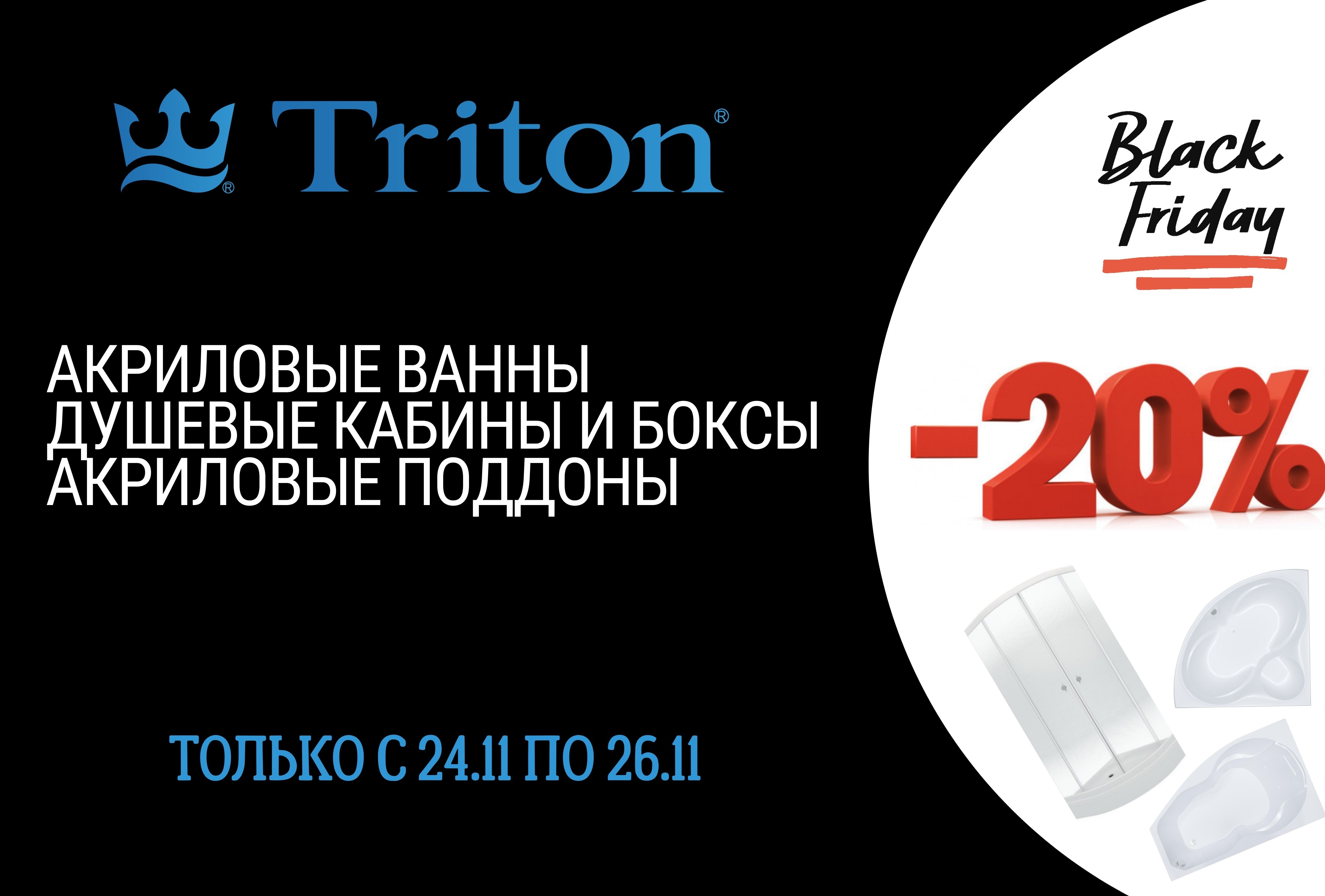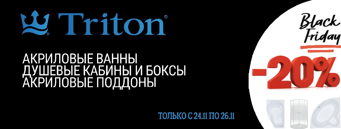Черная пятница 23.11.2021 Новость Только с 24.11 по 26.11. супер скидка 20% на акриловые ванны, душевые кабины, боксы и акриловые поддоны Triton! Это "Черная пятница" и время делать покупки выгодно! КАТАЛОГ ТОВАРОВ | СПИСОК МАГАЗИНОВ | МАГАЗИНЫ НА КАРТЕ